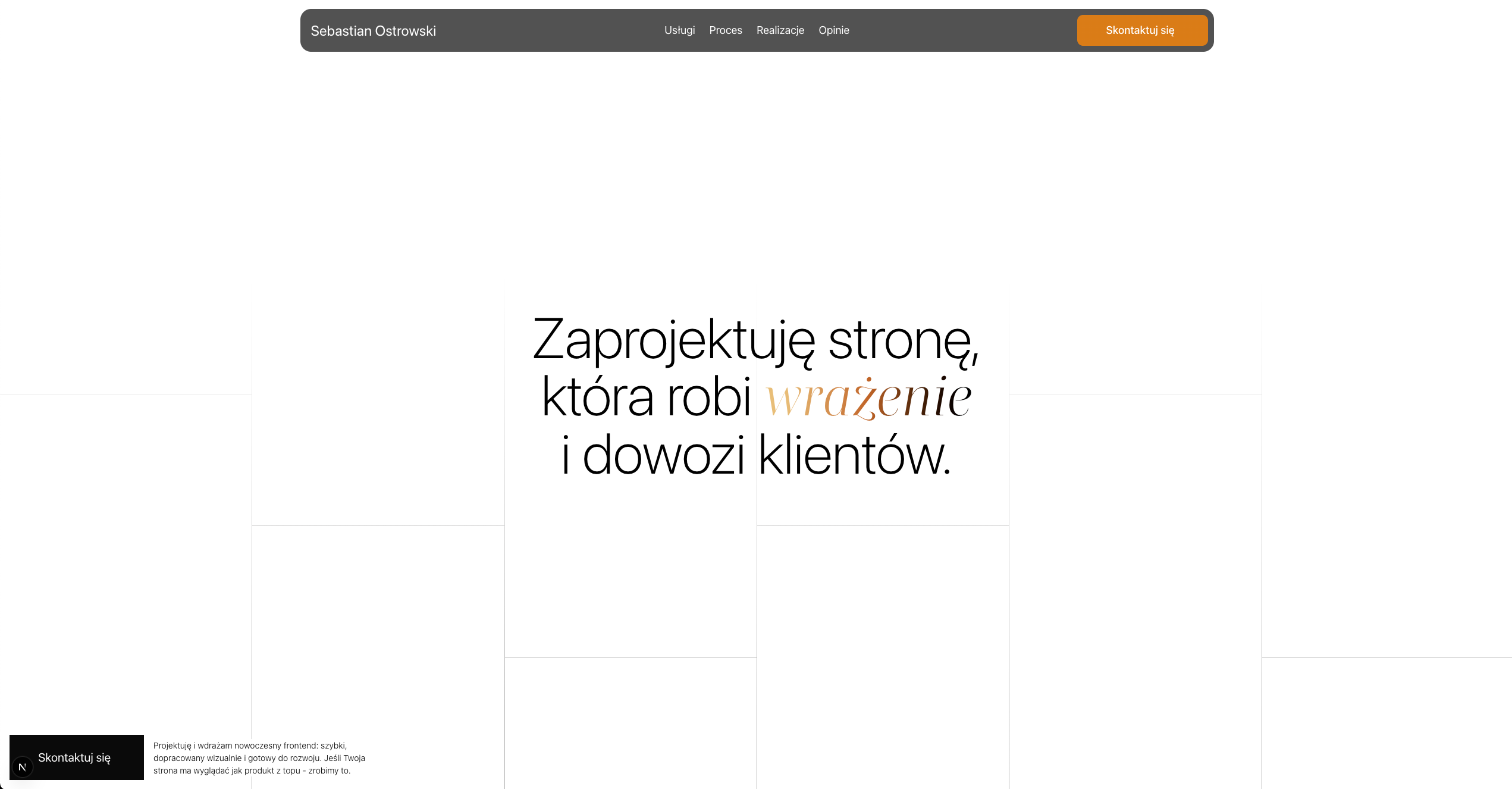 Od pierwszego layoutu po gotowy front-end: struktura, siatka, typografia, sekcje, responsywność. Tworzę stronę od zera, dopasowaną do Twojej marki, zamiast składać coś z szablonów.